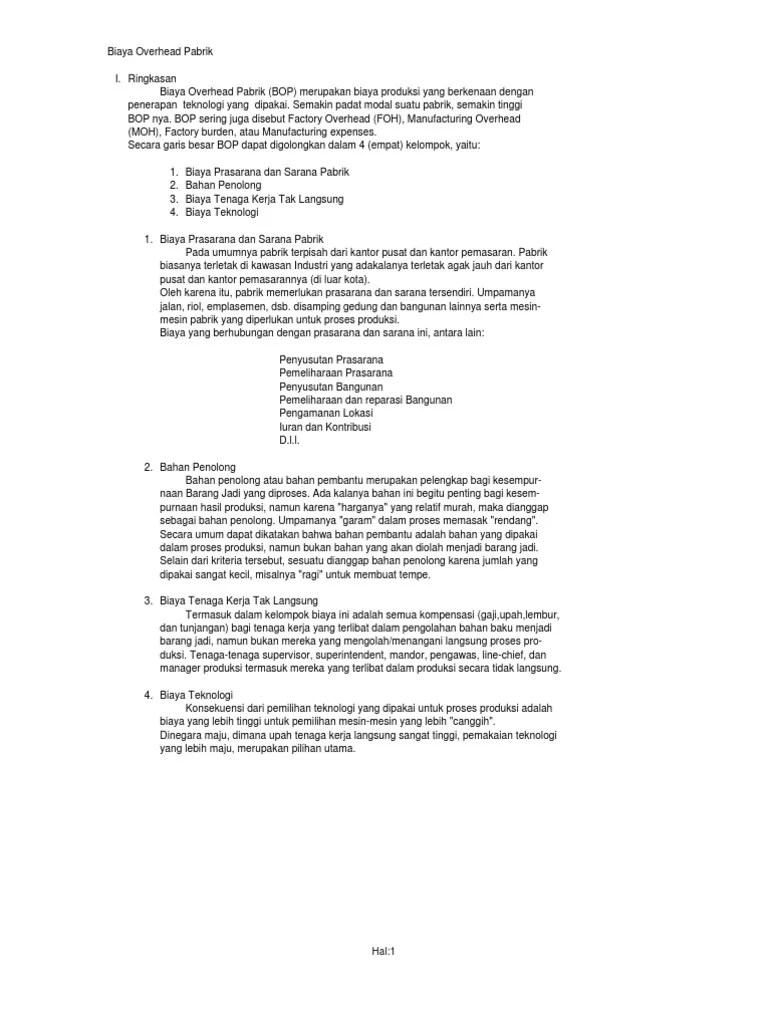 14.01.2021 · untuk barang, biaya ini mungkin termasuk biaya variabel yang terlibat dalam produk manufaktur, seperti bahan mentah dan tenaga kerja. Penetapan kapasitas praktis ini perlu dilakukan karena sangat tidak mungkin suatu pabrik dijalankan pada kapasitas teoritis. Biaya penilaian (appraisal cost) sama seperti point sebelumnya, biaya penilaian ini juga dikeluarkan agar kualitas barang tidak … Misalnya, perusahaan manufaktur yang tugas utamanya adalah mengelola bahan baku hingga menjadi produk jadi siap jual, maka contoh dari biaya overhead adalah tarikan pajak, asuransi karyawan, tarif sewa tempat, perlengkapan atk, dan gaji penjaga … 22.09.2020 · biaya overhead adalah pengeluaran tambahan yang tidak berkaitan langsung dengan proses bisnis atau produksi yang dilakukan.